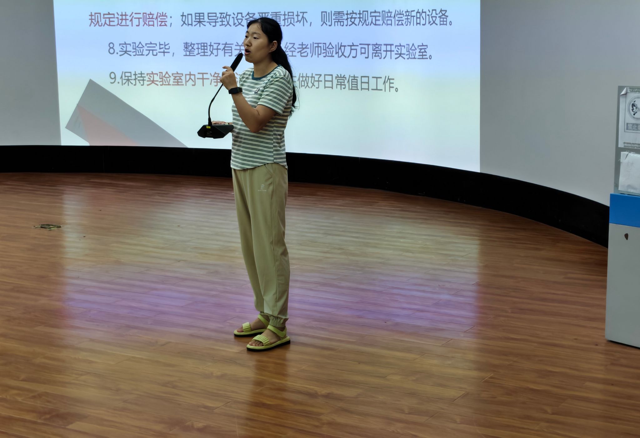 培训最后,实验室管理员薛玲作了总结,并要求所有新生会后通过线上安全教育平台,继续完成后续的实验室安全知识学习和考试,确保安全知识掌握全覆盖、无死角,为今后进入实验室开展学习实践活动奠定坚实的安全基础。