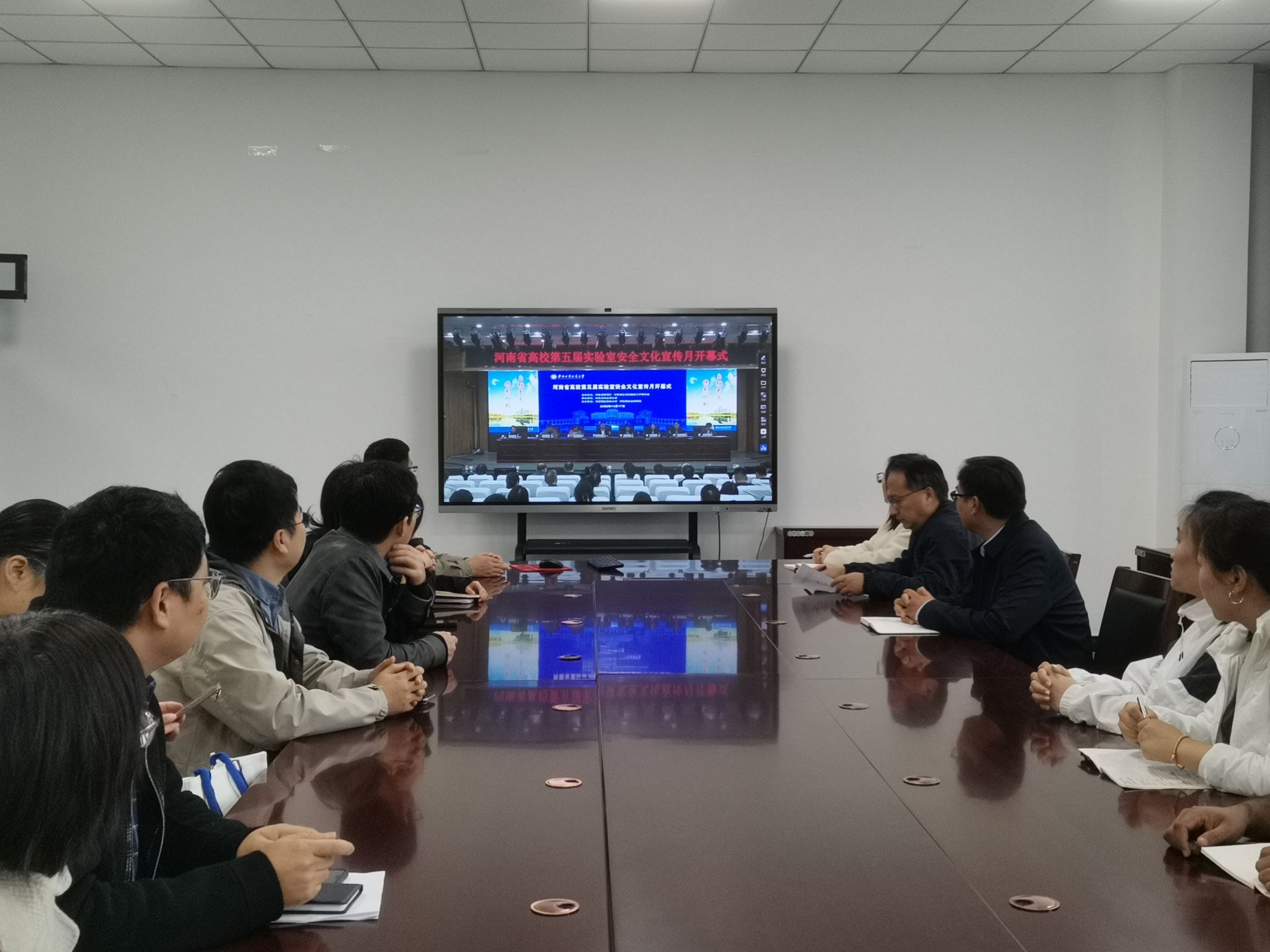 为深入贯彻落实教育部、省教育厅关于高校实验室安全管理的决策部署,积极响应学校“第五届实验室安全文化宣传月”活动号召,10月17日下午,我院组织全体师生集中观看了“河南省高校第五届实验室安全文化宣传月”活动开幕式。