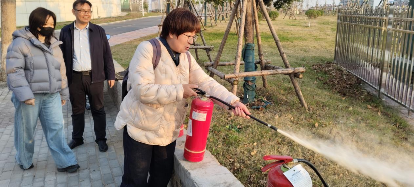 进入实践操作环节,秦老师以手把手教学的方式,带领师生学习灭火器使用方法,从提瓶持握到按压喷射的全流程动作,都逐一细致纠正,确保人人都能熟练掌握操作技能。师生们在共同参与、互动实践的过程中,不仅深化了消防安全认知,更切实练就了应对突发火情的实操硬本领。