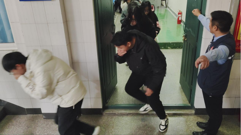 宣讲中,秦川老师结合真实火灾案例,深入浅出地讲解了灭火器正确使用方法、火灾逃生注意事项、初期火情处置等核心知识,用通俗语言拆解消防安全关键要点。理论讲解结束后,又进行了疏散演练,在秦老师的专业指挥下,同学们迅速反应、弯腰低姿、捂住口鼻,沿着指定路线有条不紊地撤离会场,整个过程紧张有序、规范高效。