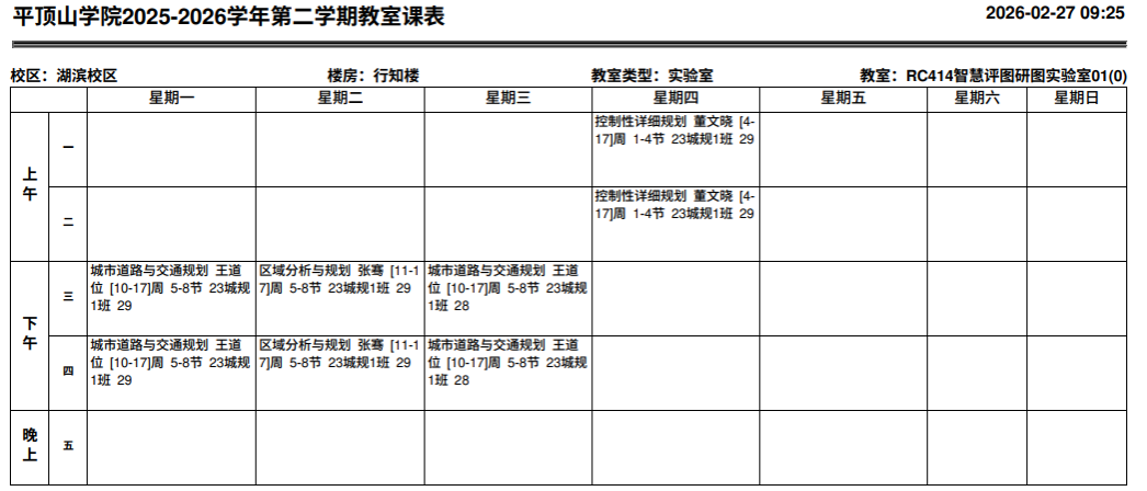 本学期主要承担《城市道路与交通规划》、《区域分析与规划》、《控制性详细规划》等课程的实验项目教学工作。